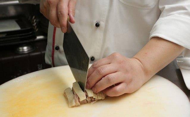 皎洁的葱丝配着羊脂玉色的鸡肉,肉上的鸡汁凝露渐渐变成肉冻,远远看去晶莹剔透,像极了白玉。看起来很清新的一道鸡肉菜,味道可不寡淡。