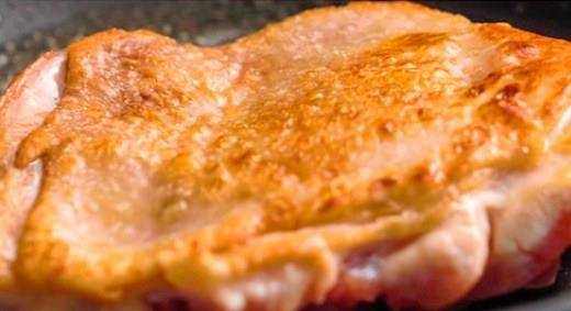 烧热平底锅,鸡皮朝下放,煎香鸡扒两面至7成熟,切块备用。