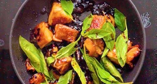 三杯鸡,这道台湾名菜,烹调方法比想象中简单。三杯是指麻油、酱油米酒,每样材料的分量各一杯,便是酱汁的灵魂,不过想健康一点,便减了些麻油的分量。台湾惯用一整只鸡制作,这次用煎香了的鸡扒,吃时不用吐骨,啖啖肉,带饭更方便。