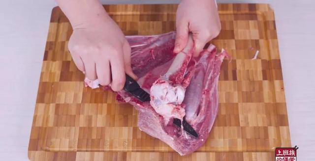 火鸡鸡腿剔腿骨,骨头留着,一会儿还有用。