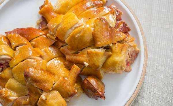 隔天将鸡取出去掉腌料,以大火蒸约18分钟,关火继续盖着焖10分钟。取出鸡,放在通风处吹至干身。