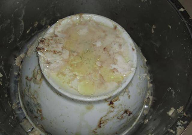 拿开碗公,鸡精自然流出来了!