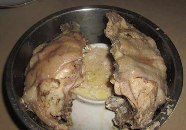 鸡肉取出,啊鸡精咧?因为虹吸原理,鸡精会锁住于碗内。