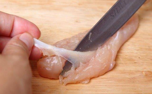 Tips:鸡胸肉虽然不一定要去筋,但去筋可以让口感更好,更顺口好吃。