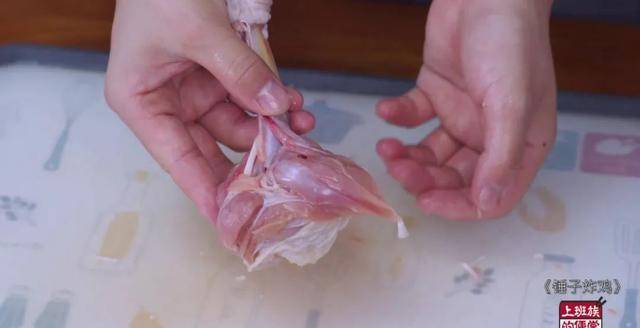首先把靠近骨头的一边剪一圈,再往下来两刀,这么一翻,就成了一个小锤子了。