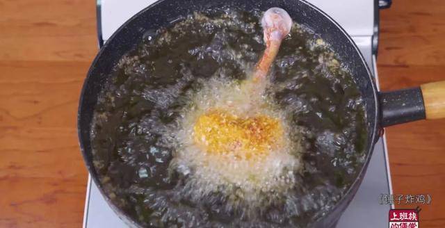 把油锅烧到6成热,一个个放入鸡腿,用小火炸上个8-10分钟,看看这表皮金黄酥脆就搞定了。