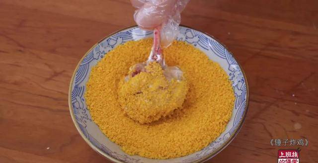 给鸡腿安排个馋哭隔壁小孩三件套:淀粉、蛋液和面包糠。