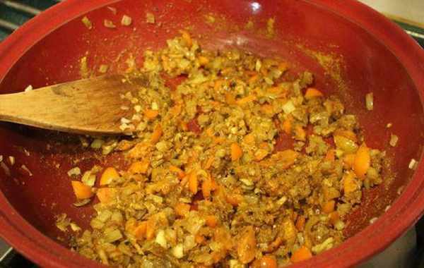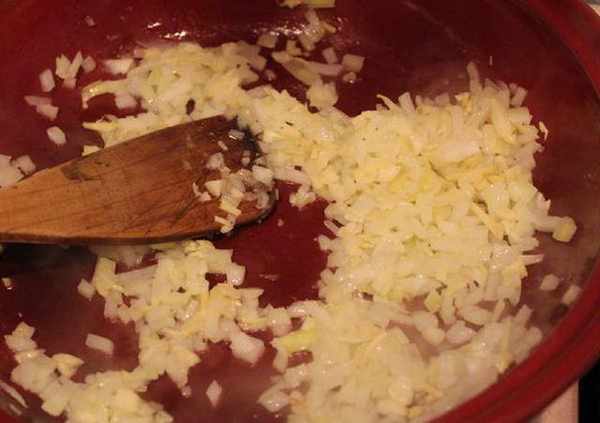 Step2.将油放入锅中,热锅后,将洋葱末、姜末、蒜末一起炒香,至洋葱变软变透明。