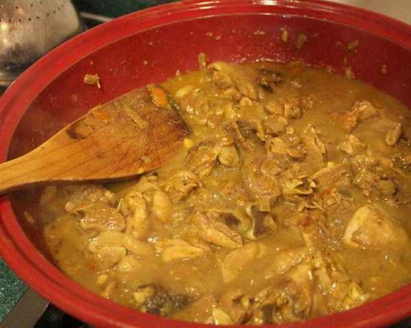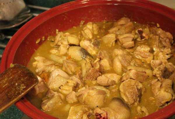 煮好了,浓稠微辣、香气逼人的咖喱鸡。