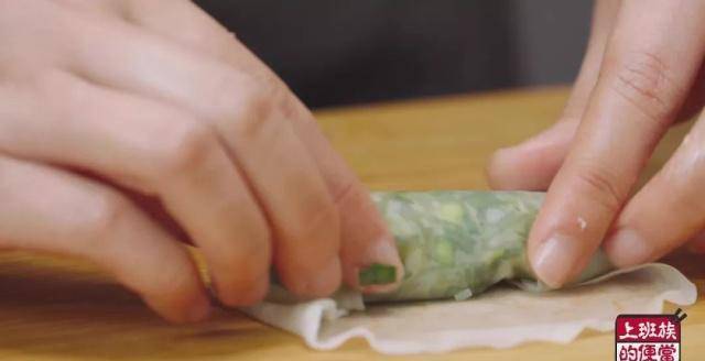 今天我要包的春卷是韭菜虾皮鸡蛋粉丝馅