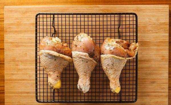 1.将鸡腿肉稍微风干可以更容易的烤出脆皮的鸡腿喔。
