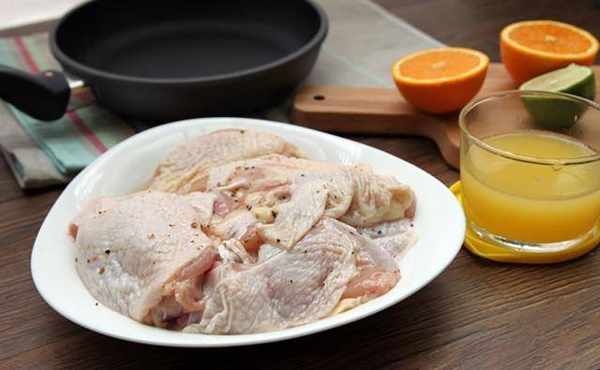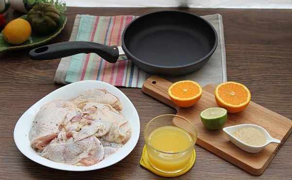【食材】去骨鸡腿1根、柳橙2颗、柠檬半颗