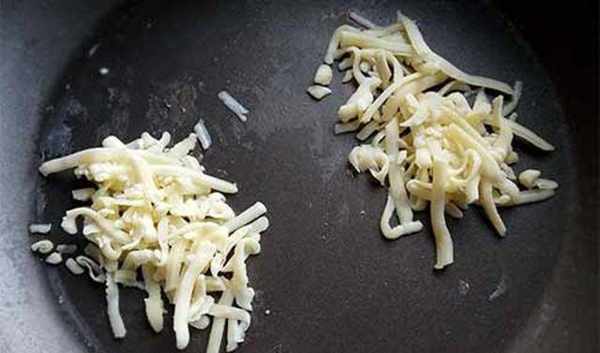 3.煎起司丝请使用不沾锅,才不会粘锅唷!