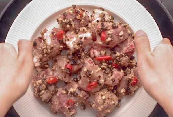 Step4.排骨腌约30分钟,之后平均铺在碟上。