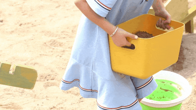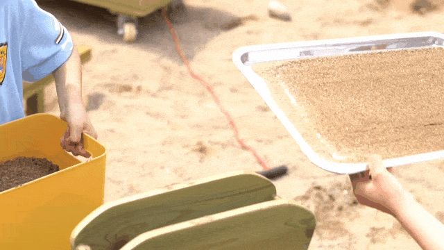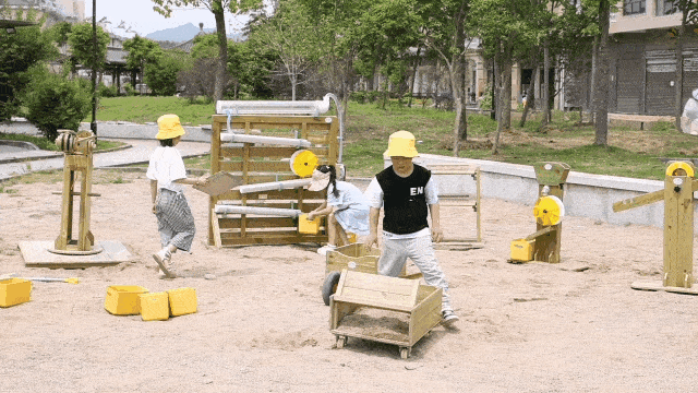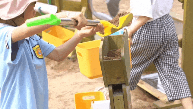 大海的一部分是由沙子定义的,孩子们热衷于在沙滩上构建自己的王国。翻斗沙车+独轮车+筛沙台的三件套设计,使孩子们能更直接感知沙子既是固定的,又是流动的。