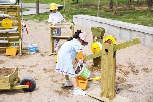 这种创新的主体产品和辅助道具,孕育了一个沉浸式的、自然丰富的户外玩沙戏水环境。