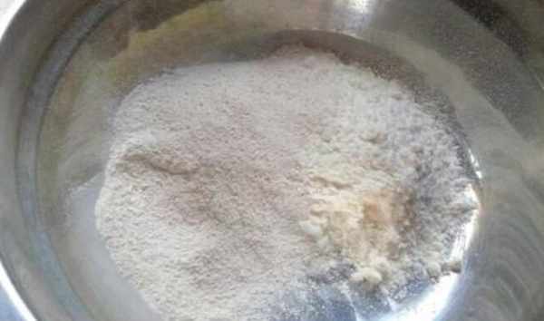 第三步:在碗中倒入100克紅薯粉,然後倒入清水將它攪拌成黏稠的面糊狀,調好之後倒在芋頭泥裡面,然後將它用擀麵杖再攪拌在一起放在一旁備用。