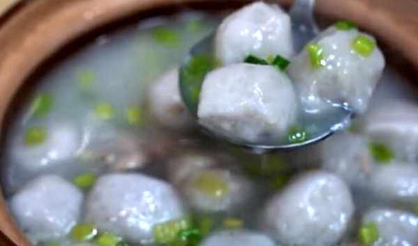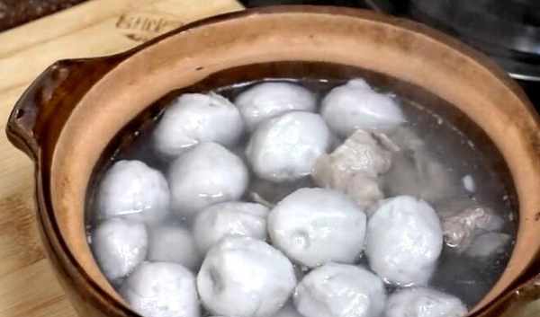 第四步:這個時候的骨頭湯已經熬好了,將它轉小火,將蓋子取下來,用手取一小塊芋頭泥用虎口將它做成丸子,一邊做一邊下入鍋中,一直煮至芋頭丸子定型之後加入一勺鹽,一點點胡椒粉,少許的食用油,最後再加點蔥花或者香菜點綴一下,營養美味的芋頭丸子就做好了。