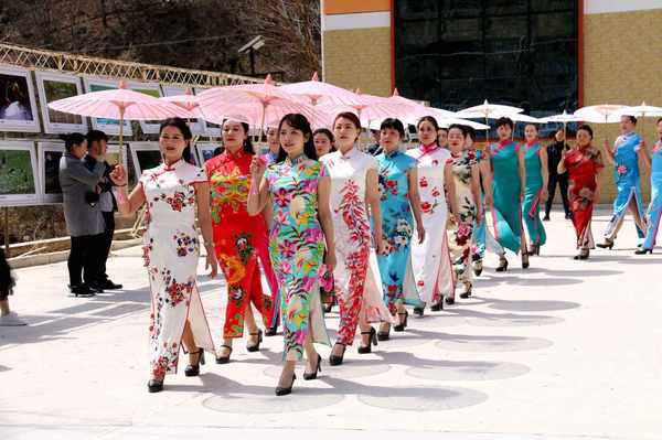 往届“茱萸花海踏春游”活动中的旗袍秀(央广网发 吴彦峰 摄)