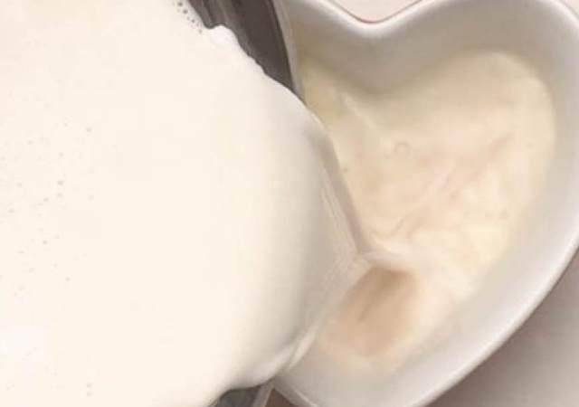 Step3.将姜汁拌匀,快速地将热牛奶撞入姜汁内。Step4.盖住,静置牛奶至凝固约5至10分钟完成。