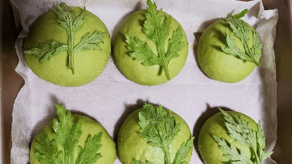 小贴士:焯艾叶时放些盐。艾蒿叶不会变色,永远是绿色的。