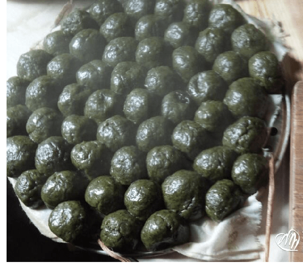 这里的田地里长满了艾草叶,特别香,因为你做的艾草菜越多,味道就越好。糯米粉是根据你自己的口味调整的。