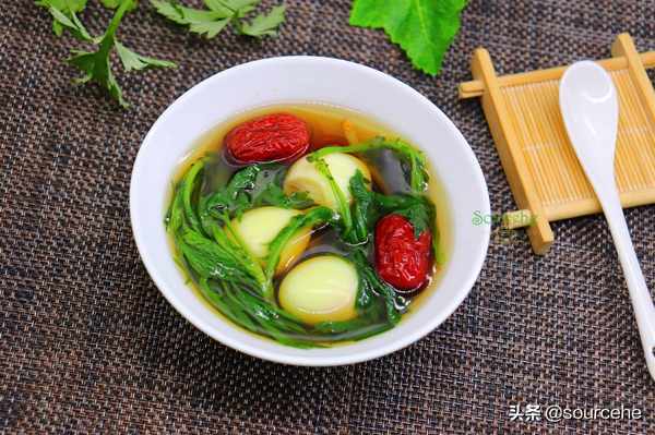 【艾叶红枣煮鸡蛋】食材:新鲜艾叶、鹌鹑蛋、红枣、生姜、红糖。其中,鹌鹑蛋也可以用鸡蛋代替。有些人喜欢吃煮鸡蛋和蔬菜汤。我喜欢全蛋,味道更美味。生姜可以去除艾草的苦味,增加味道,还可以升温。建议使用红糖或黄糖。