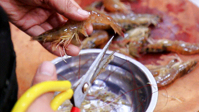 1、准备500克鲜虾,切下虾须和虾腿防止油炸,用牙签挑出虾肉第三段的虾线,最后在虾背上切一刀,使虾的味道更鲜美。