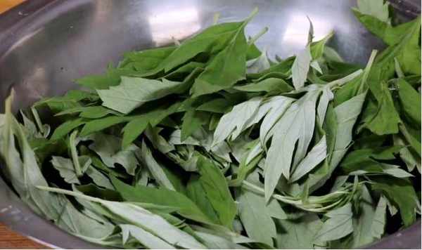 2.首先取出准备好的艾草,从艾草上切下所有的艾草叶。切好后,我们把它放在一个大碗里。