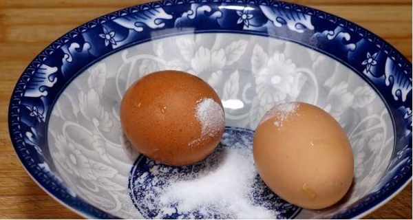 3、清洗干净后,我们将两个准备好的鸡蛋取出,放在一个大碗中,加入适量的盐,然后倒入清水将鸡蛋清洗干净。盐可以杀菌和消毒。清洁后,将它们放在碗中,然后放在一边备用。接下来,我们将取出准备好的生姜,并将其彻底清洗干净。