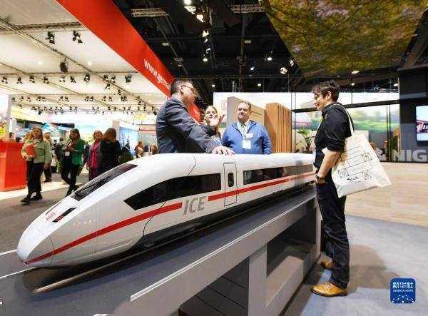 3月7日,人们在德国柏林举行的柏林国际旅游交易会德国铁路公司展区交流。