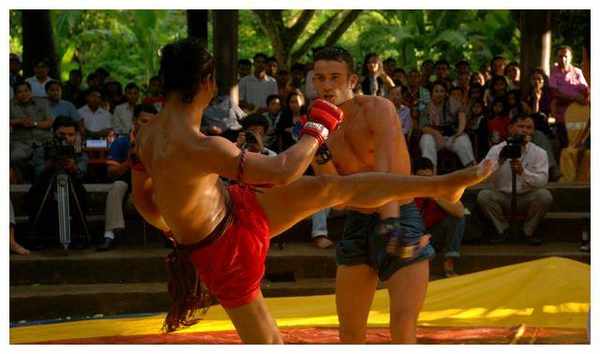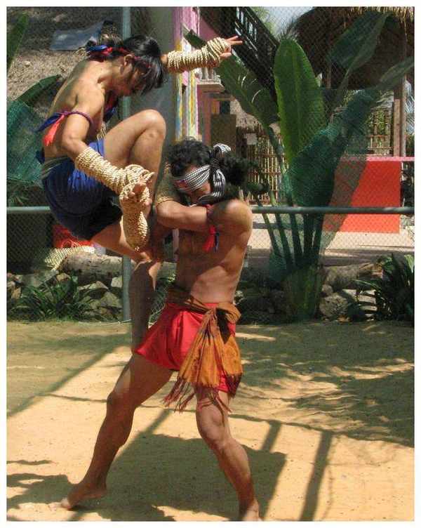 另外,狮斗拳和泰拳是同宗同源,所以打斗风格相似,动作敏捷轻巧,打击力强。在兵器技能上,也有单刀、双刀、双持短棍等。种类繁多,非常实用。但与东南亚其他拳种相比,狮斗拳更强调站姿的快速移动能力,使得战士在对抗中更容易避开对手的攻击。 在战斗中,狮斗士通常穿着古代高棉军队的制服。一条围巾(Krama)缠在他们的腰上,蓝色和红色的丝线(Sangvarday)绑在战斗人员的头上和二头肌上。在过去,绳子被认为可以增强力量。现在,绳子在球场上更多的是一种仪式感。作为一种表演形式,斗狮也出现在对当地守护神(NeakTa)和其他节日的拜访中。