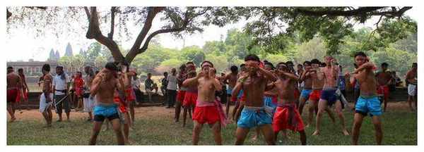 柬埔寨的吴哥窟在地球上屹立了近千年。墙上有文化和宗教元素的雕刻。除了神和舞蹈,还有柬埔寨传统武术的秘密。健美的身体,矫健的身姿,栩栩如生的格斗雕塑,记录了柬埔寨几乎失传的一种古老拳法———— bokator。作为柬埔寨拳法之一,发现斗狮拳处处传递着柬埔寨传统武术的魅力。 拳击源于自然 狮斗拳是一种古老的柬埔寨武术,在吴哥帝国时期发展成为近身格斗。在柬埔寨语中,bok在bokator的意思是沉重的打击,tor的意思是狮子。合起来就是“给狮子重重一击”的意思。根据传说,在古代柬埔寨,狮子经常出没于村庄,攻击村民和牲畜,制造麻烦。在这方面,在9世纪高棉王国建立之前,村民们创造并发展了一种激烈的战斗技术来保护自己。柬埔寨人和狮子的祖先在战时赤手空拳发明的招式,经过提炼、改进和丰富,衍生为斗狮拳。 斗狮拳包含了吴哥时期以来代代相传的习俗和历史元素。柬埔寨先民的故事中提到,英勇的战士曾经在这片土地上占据重要地位,而这些故事都来自于著名的吴哥窟的石墙。