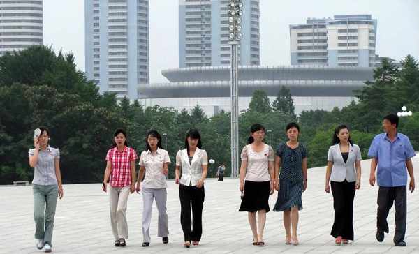 导游告诉大家:平壤市民一天之中最休闲的时间就是下班之后了,女人会回家做饭,男人会慢悠悠走路回家,或者是去江边溜达一会,看看别人钓鱼,回到家之后吃现成的饭菜,抽烟、看电视,家务活基本都是国外女人承包了。