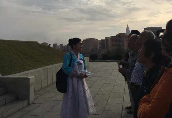 一般来说,朝方会派出一支由一名司机、两名导游的三人队来陪同游客,两名导游的责任很明确,一位负责风土人情的讲解介绍,一位负责维持游客秩序,哪里能去,哪里能拍,什么人能接触,都是这名导游说了算,有趣的是:这名特殊安排的导游,基本很少说话,但看得出来她在时刻关注游客们的谈话内容,不管是普通话还是英语好像都能听得懂,但是说粤语的时候,迷茫的样子好像是听不懂的!
