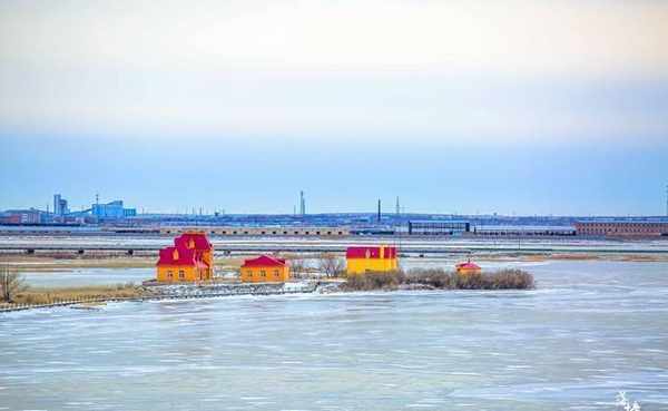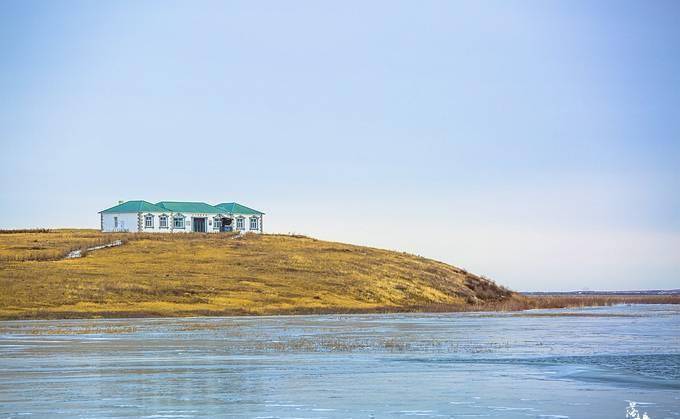 秋冬季节,生长在尔卡湿地的大片芦苇从淡黄色变成深褐色,木栅栏围成的房屋格外醒目华丽,仿佛画家刻意用浓墨来丰富单调的冬天。