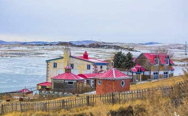 在平原的冰雪世界里,红顶黄墙的建筑犹如童话世界里的猎人之家。