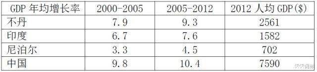 虽然强调国民幸福总值,不丹的GDP增长并不逊色,从下面图表的数字中可以看到,不丹的GDP增长是优于国外的,只是比我们稍差一点。正是由于良好的GDP增长,不丹才能够比国外更早脱贫。