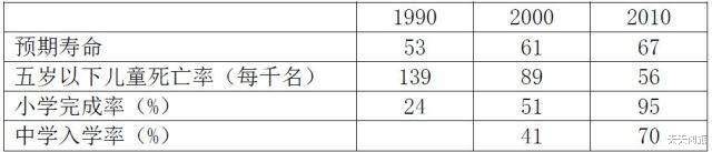 其成果不仅表现在GDP的增长方面,还表现在民众的教育健康水平提高方面。比较不丹1990年、2000年和2010年的数据可以看到(见图表),其预期寿命大大提高,五岁以下儿童伤亡率大大降低,小学完成率和中学入学率改善巨大。不丹的这种改进增速远优于大多数发展我们家。