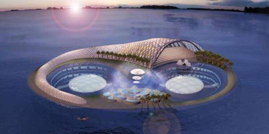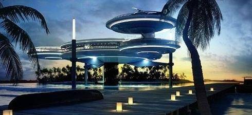它的外观看上去非常像一个飞盘,以圆形结构铺开里面的每一个房间。全玻璃式建筑,高科技让时尚的玻璃即便深入海水也能承受住气压,鲨鱼都撞不破。不过如果真的遇见鲨鱼,你敢不敢来一场鲨鱼共舞呢?