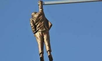 原来,这个吊在半空的''大叔''只是一座雕像,与其他城市在市广场建造伟人的雕像差别很大。布拉格的人们认为,这个雕像的呈现方式和姿态体现了他们独特的生活态度。这个雕塑的建造者是捷克艺术家大卫,他的原形采用自奥地利人西葛摩德。这座雕塑曾经在多个地方展出,但最终被放在了这里。
