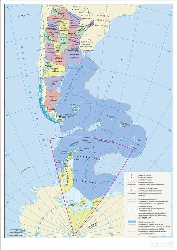 阿根廷眼中的自己地方地图,除了本土,还包括争议群岛以及南极的一部分,看来阿根廷也是很有自己想法的。