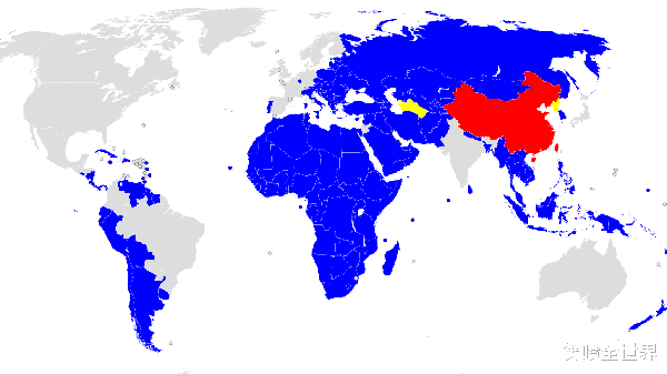 图中蓝色表示已签署我国倡议的一带一路合作文件的地方或地区,暂未参加一带一路的大国有国外国外国外巴西国外国外国外等。