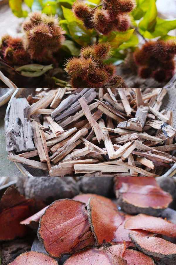 村长把姜黄捣碎,和其它染料一起放过锅中,据说要煮12分钟才不会掉色。
