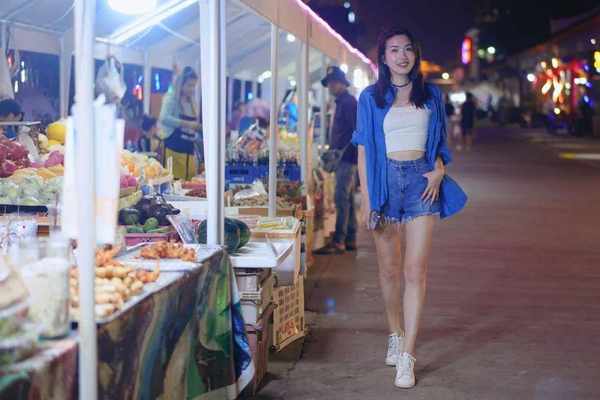 晚上22:00,换上热裤和朋友们逛夜市去,夜晚还有些凉意,要穿长袖。