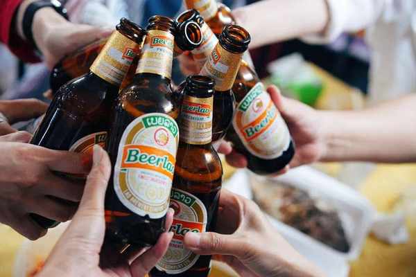 舂木瓜,烤鱼,老挝啤酒喝起来,和几个好朋友们一起旅行就很开心。老挝时间比北京时间晚一个小时,夜生活才刚开始。