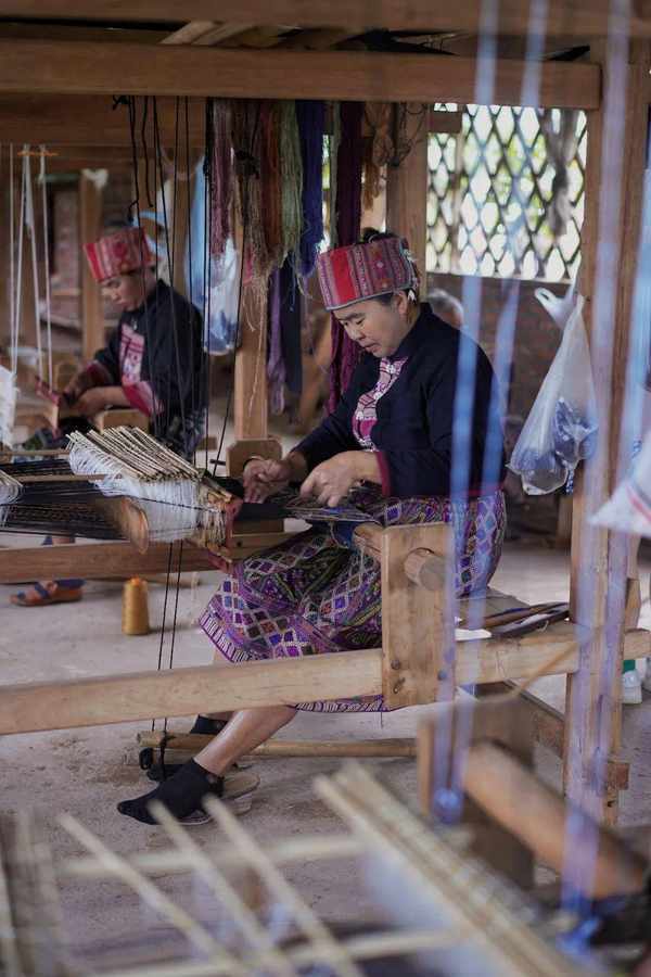 另外一间房间里,有几个偏俺村的当地妇女安静的织着布,看上去很复杂,图案很有老挝特色。