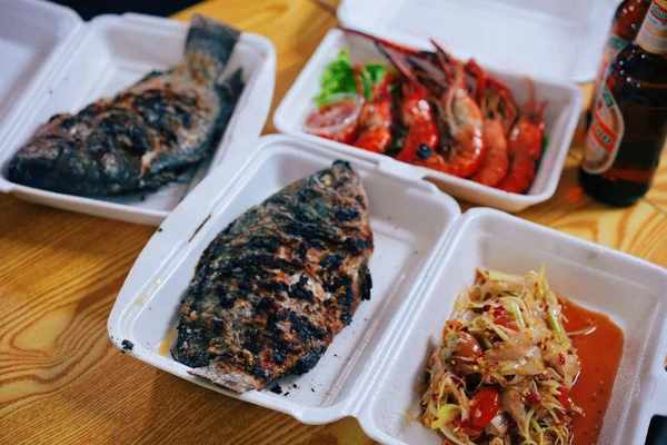 一瓶老挝啤酒6元,一盒烤虾35元,一串鱿鱼5元…价格和国内差不多。