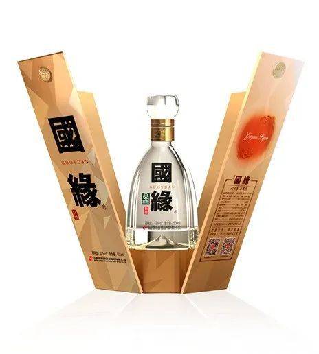 对于国缘四开产品来说,其独特外观是对缘文化的具象化展示,聚合型的包装结构,体现了聚合生财,聚散总是缘的理念,瓶身两侧的流畅线条,似“高山流水”的美妙境界,实现了缘文化属性与产品特征的紧密结合。