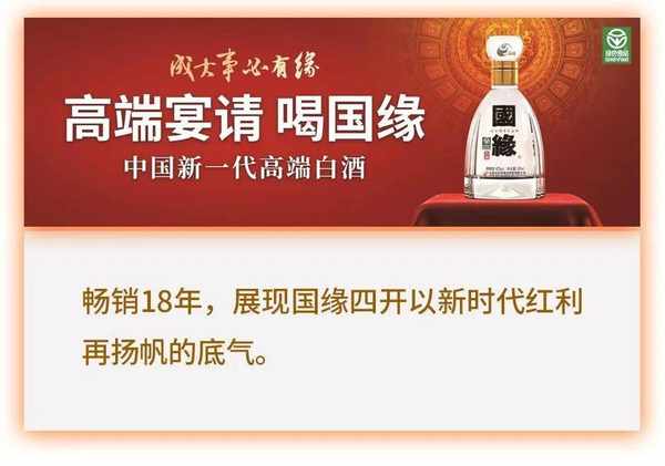 国缘品牌定位“中国新一代高端白酒”,而国缘四开作为畅销全国的大单品,还将以更强的号召力和影响力占位次高端市场。值得注意的是,国缘四开的独特口感使其天然具有着冲击次高端价格带的品质基因,饮后自然舒适,慢醉快醒的特点更适合商务宴请消费场景,满足城市新中产阶层的消费需求。